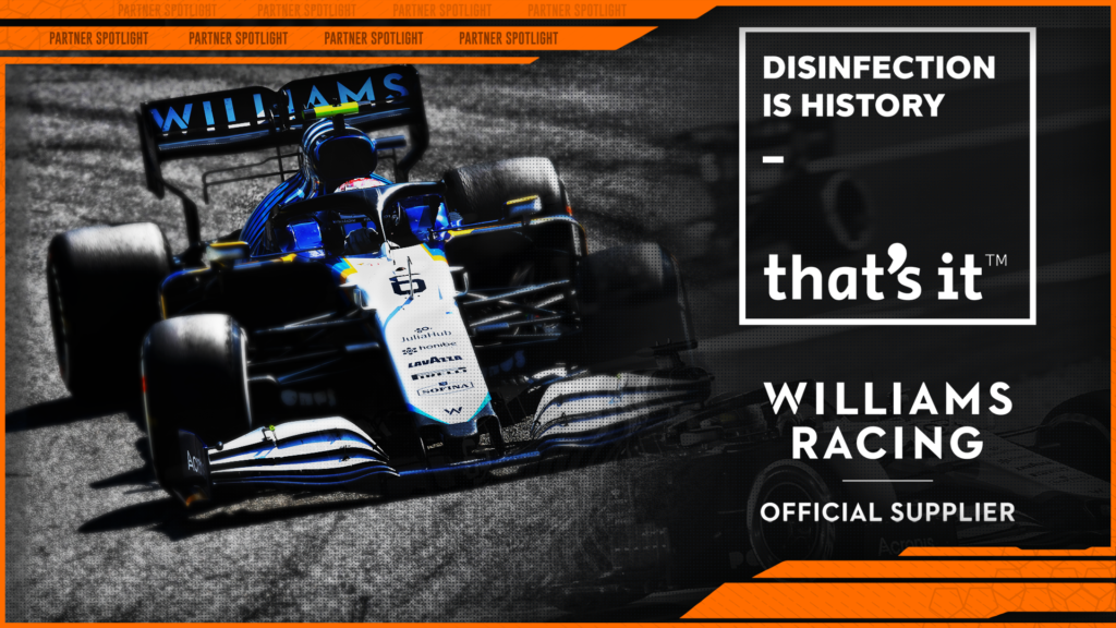 For years, Formula 1 drivers have been driving safer and more protected on the world’s racetracks. Thanks to new technologies, with the help of science and research. Now the first team in Formula 1 is also focusing on maximum safety in the fight against Covid 19. The British racing team Williams Racing is cooperating with the Berlin-based company That’s it International GmbH and is protecting its team from virus infections with the That`s it ™ hygiene concept. Corresponding contracts for a multi-year partnership with the racing team from the British Grove were concluded in January.